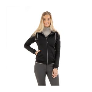 Stylish zip-up jumper made of a high quality Italian cotton/acrylic blend. Soft and warm with a flattering fit. Leather-look Epona logo on arm. Thumb hole, which makes it easy to put them under jackets, and keeps top of the hand warm.