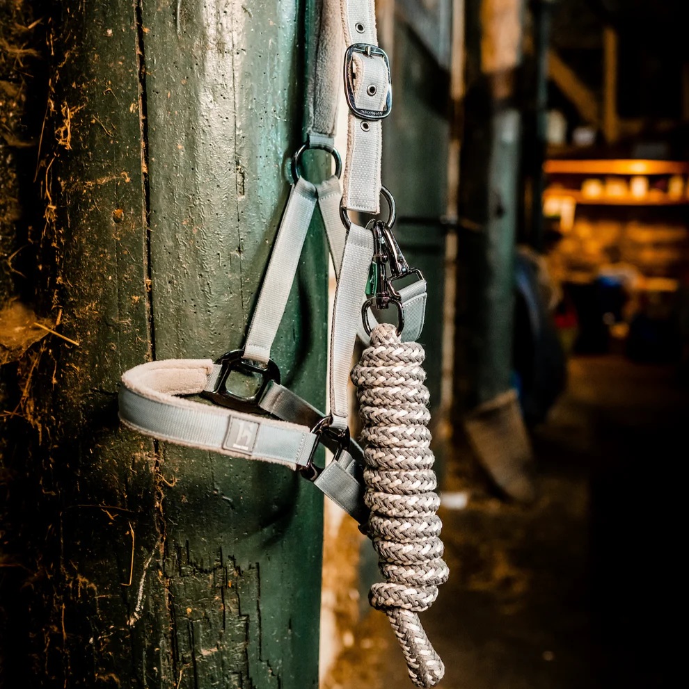 The Horseware Newmarket Headcollar and Leadrope is a simple, yet stylish must have for your horse. With the fleece lined, adjustable headpiece and noseband with polypropylene webbing, this headcollar provides added comfort and flexibility, as well as being easy to clean and durable.